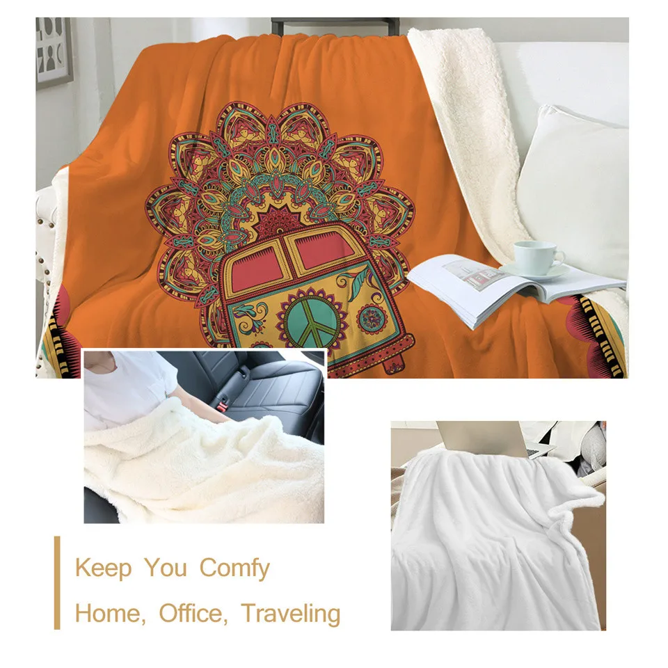 BEST QUALITY BeddingOutlet Hippie Vintage Car Velvet Plush Throw Blanket Orange Mandala Sherpa Blanket for Couch