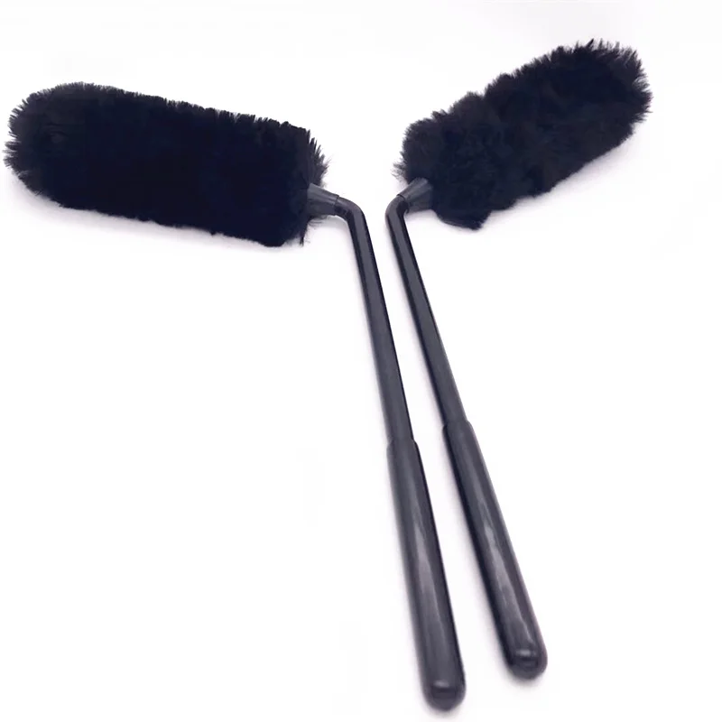Lucullan Special Design Bend Shape Handle Car Rims Cleaning Tools Soft Fibers Woolies 100% Sheep Wo