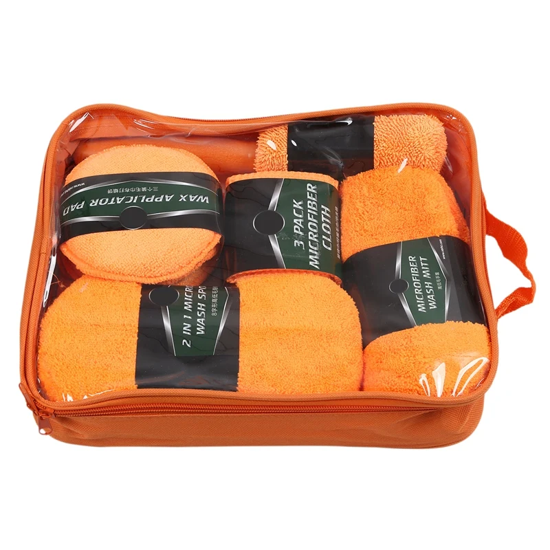 HIGH QUALITY 9Pcs Microfiber Car Wash Cleaning Kit Car Tire Brush Glass Towel Wax Cake Leather Vent Interior